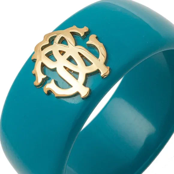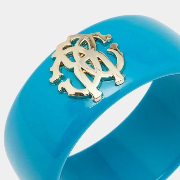 I'm selling a lovely bangle bracelet from luxe brand * ROBERTO CAVALLI * NEW! Perfect condition! COLOR: Teal Blue with Gold LogoMEASUREMENTs: Diameter - 2.5" {6.5 cm}Wide - 1.1" {3 cm}Bound to sit around your wrist and exude beauty this Roberto Cavalli bracelet is a great buy. It is made from resin and detailed with a gold tone metal logo medallion. The bracelet has a smooth finish and an appeal that is modernIf you have any questions don't hesitate to ask :-)NO PETS & NO SMOKING AT HOME !!!